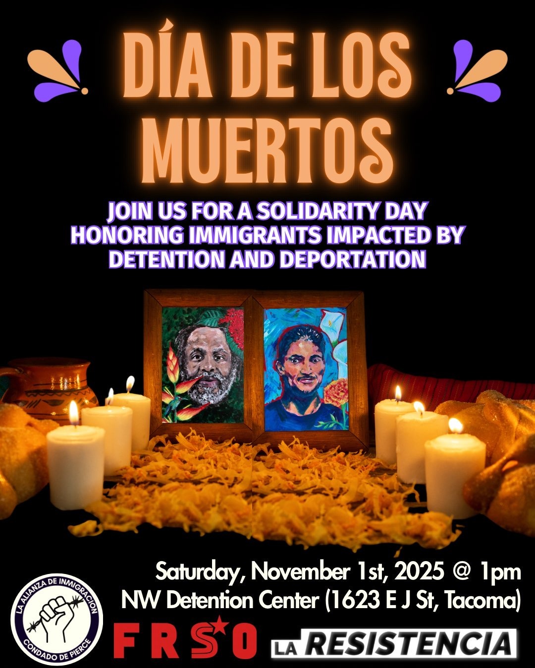 Join Freedom Road Socialist Organization (FRSO Tacoma & Seattle), Pierce County Immigration Alliance (PCIA) and La Resistencia for a Dia De Los Muertos Solidarity Day honoring and supporting immigrants that are impacted by detention and deportation!