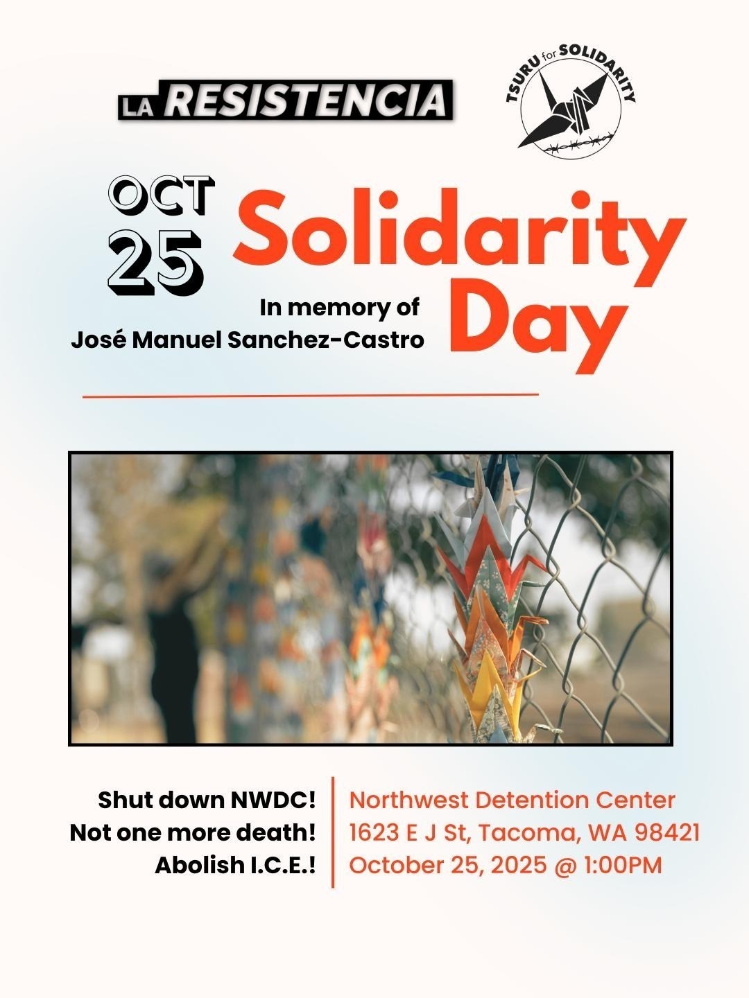 Join La Resistencia and Tsuru For Solidarity on Saturday, October 25th in memory of Jose Manuel Sanchez-Castro, we have reached 1 year of his death in the hands of ICE and GEO. Tsuru for Solidarity and La Resistencia will be holding a solidarity day on Saturday to commemorate and honor his passing.